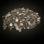 Vibrant 3D abstract artwork showcasing metallic textures against a clear sky.